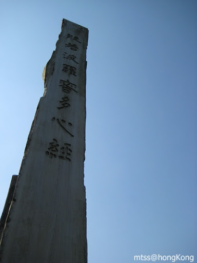 而當我們到目的地,看到這一林木柱時,心中頓時升起崇敬之心,畢竟上頭刻的是心經,我們邊走邊看著上面的字,也跟著把心經頌了一遍,心情更加平靜,只是心底的疑問還是不經意的升起:這裡是香港嗎?